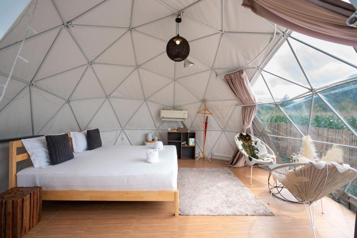 Dome Tent Aircon with Bath. Featuring free toiletries, this tent includes a private bathroom with a bath, a shower and a hairdryer. Among the room amenities are air conditioning, a minibar, a seating area as well as a patio and mountain views. Dogs are allowed. The unit has 1 bed.